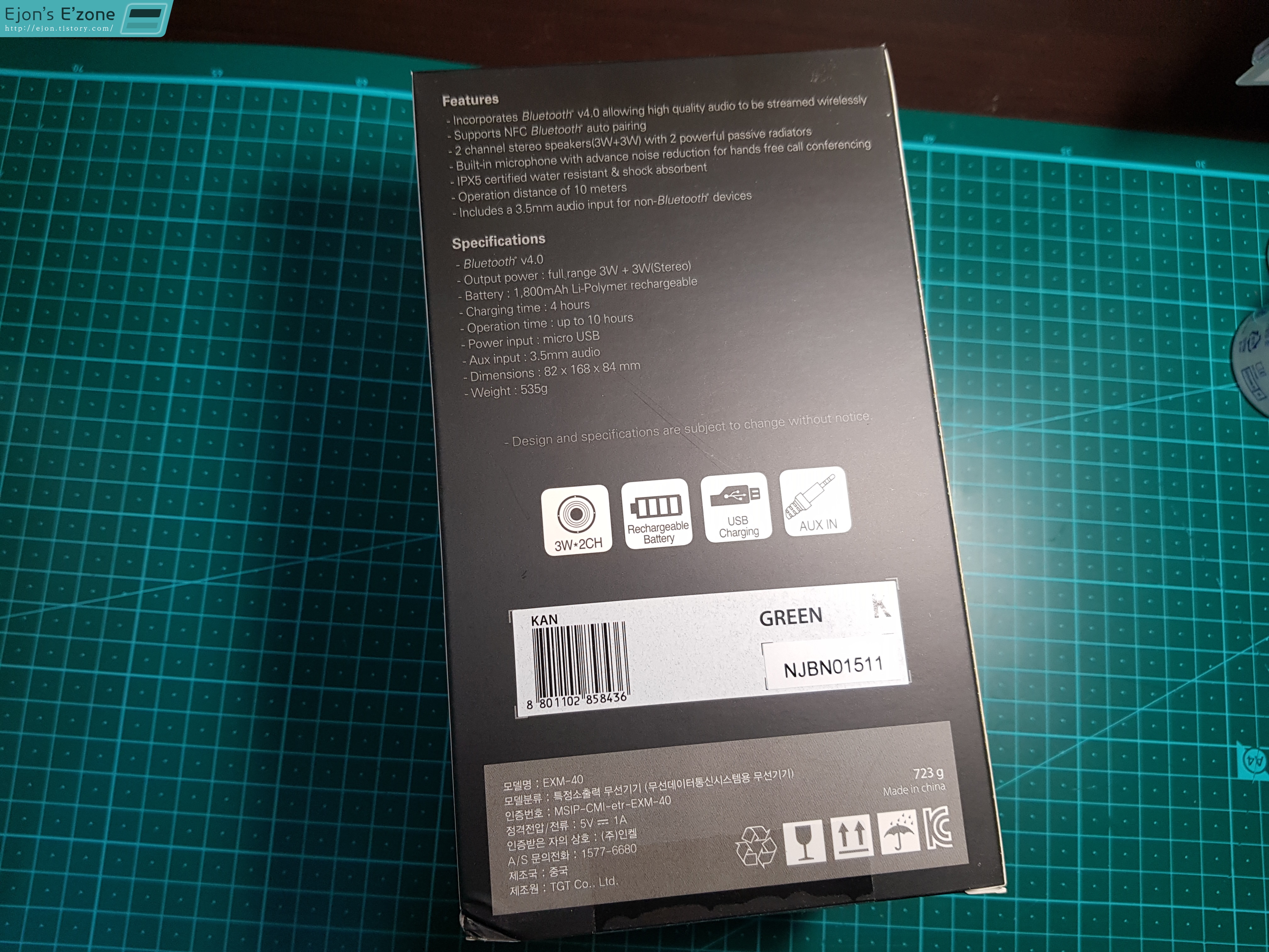 박스에 적혀있는 스펙을 보면, 블루투스 버전이 4.0으로 올라갔다는 사실을 확인할 수 있습니다. 그 이외의 스펙은 EXM-30과 비슷해요. 크기는 EXM-40이 훨씬 크긴 합니다.