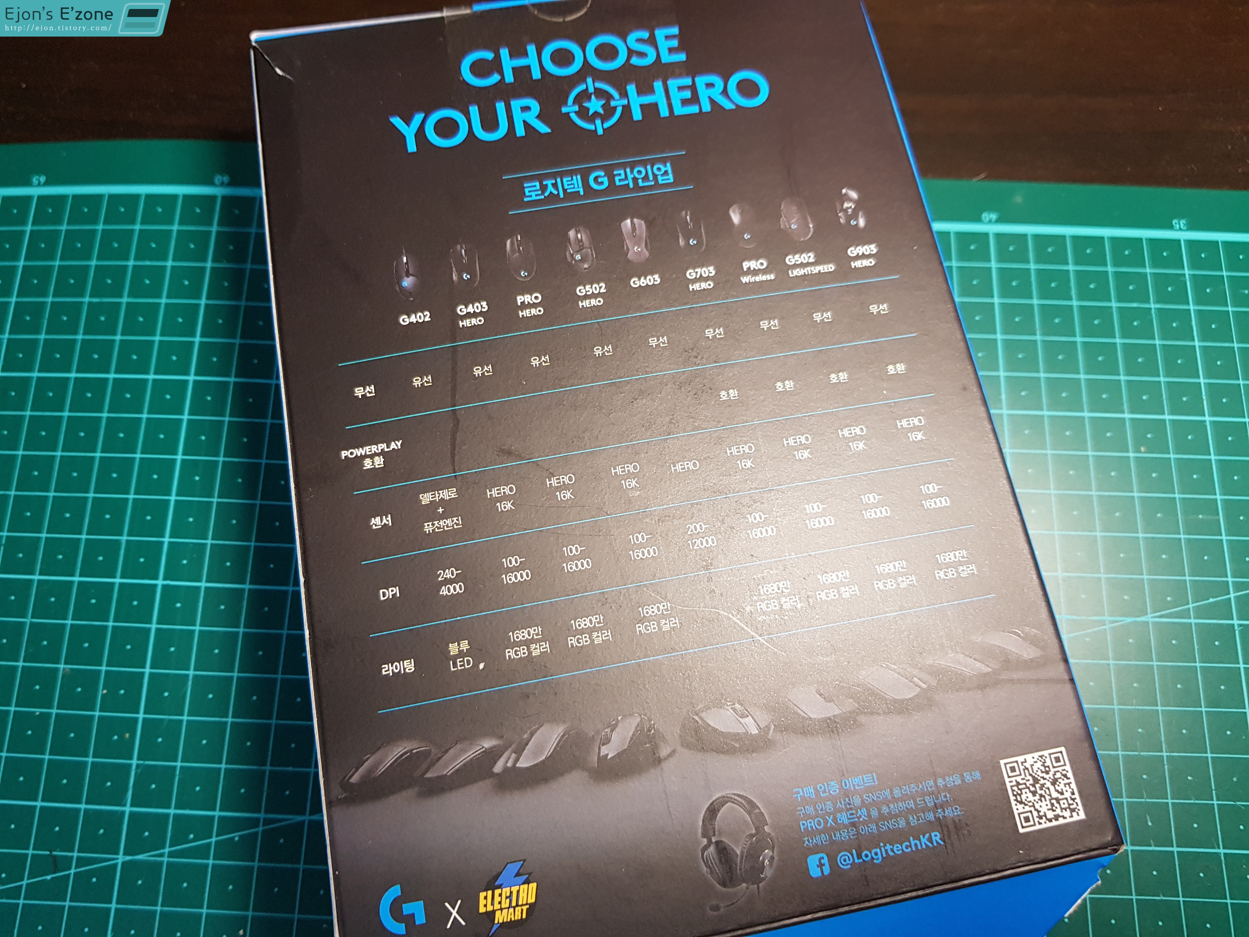 뒷면엔 나올 수 있는 거의 모든 제품(단 G102만 빼고)의 라인업을 소개하고 있습니다. G102는 럭키박스에서 가장 많이 나오면서도 로지텍 G 라인업 축에도 못 끼는 불쌍한 제품이네요.