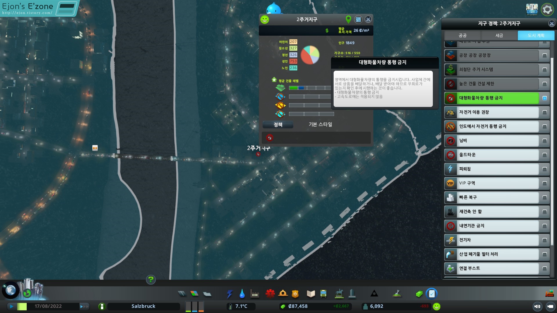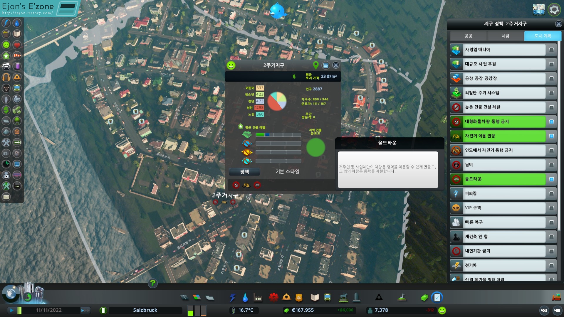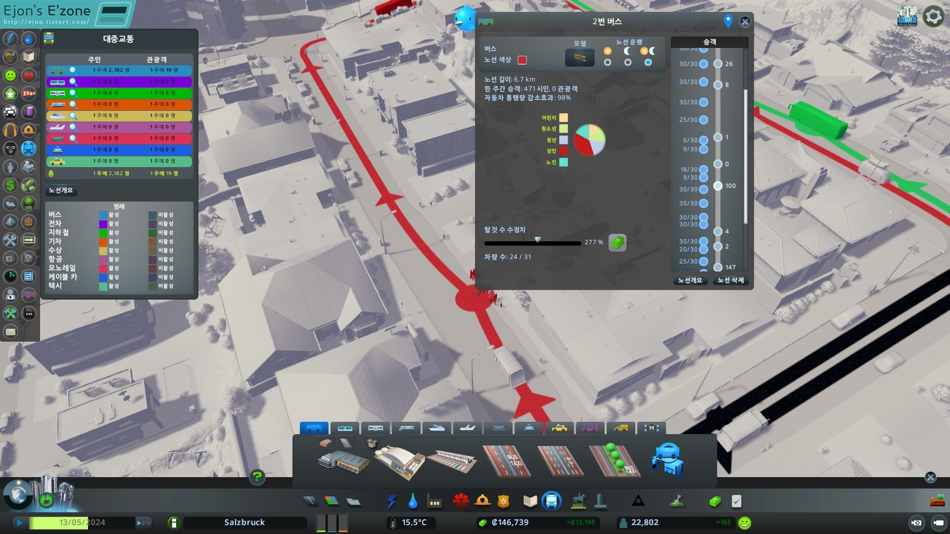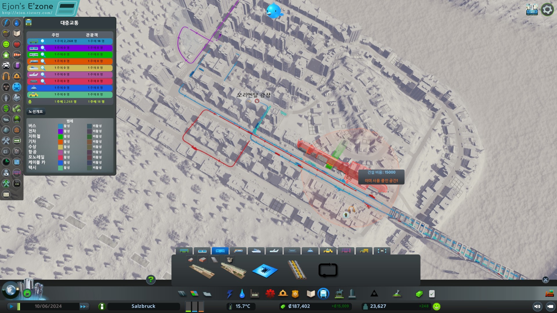 도시는 성장하는데, 은근히 대중교통 수요가 확 늘지는 않아서, 올드타운 정책을 새로 적용해 보았습니다. 이러면 자동차를 이용하던 시민들은 어쩔 수 없이 대중교통을 이용하게 됩니다. 가끔 짹짹이를 통해 불만스러운 의견들이 나오기는 하나, 깡그리 무시해주시면 됩니다.