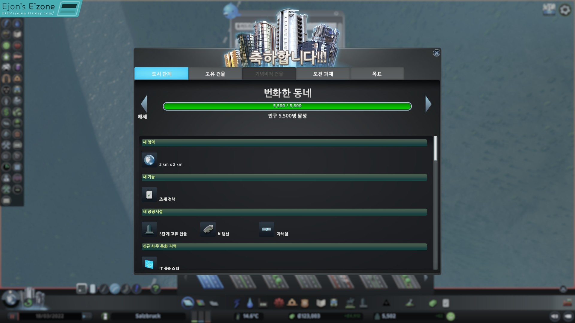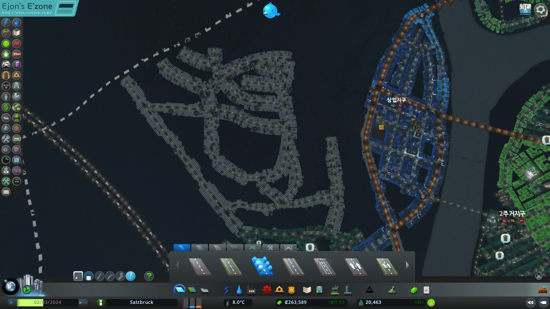 그래서 이렇게 꼭 도로를 지은 후, 그 주변 지형을 다듬어주시고, 그 후 도로를 업그레이드해서 건물을 지을 수 있는 공간을 늘려주는 작업이 필요합니다.