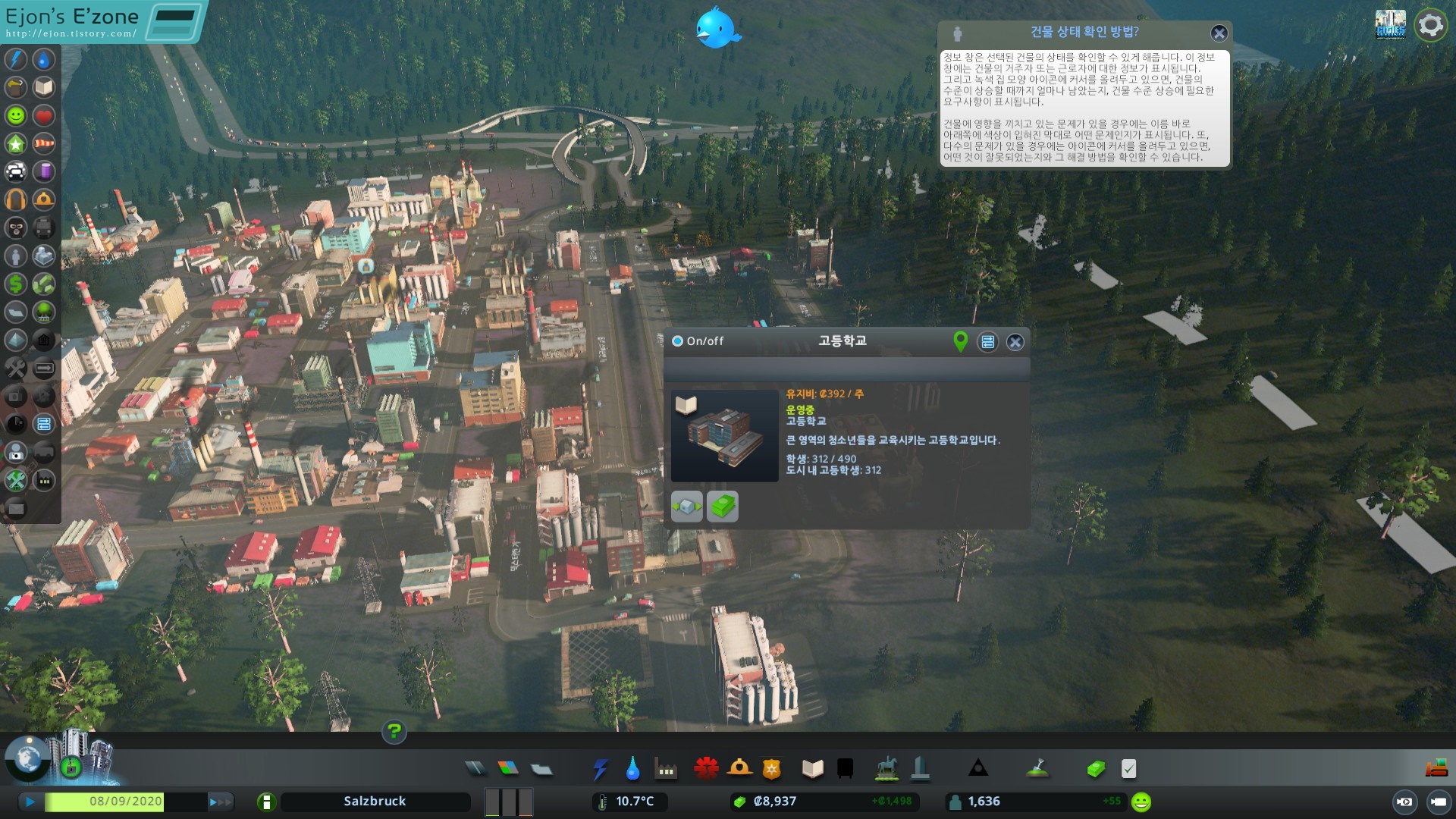원래 시나리오상 주어지는 건물(고등학교)도 가능한 주거지역에 몰빵해줌으로써 주거지역에 사람들이 많이 들어오게끔 유도합니다.