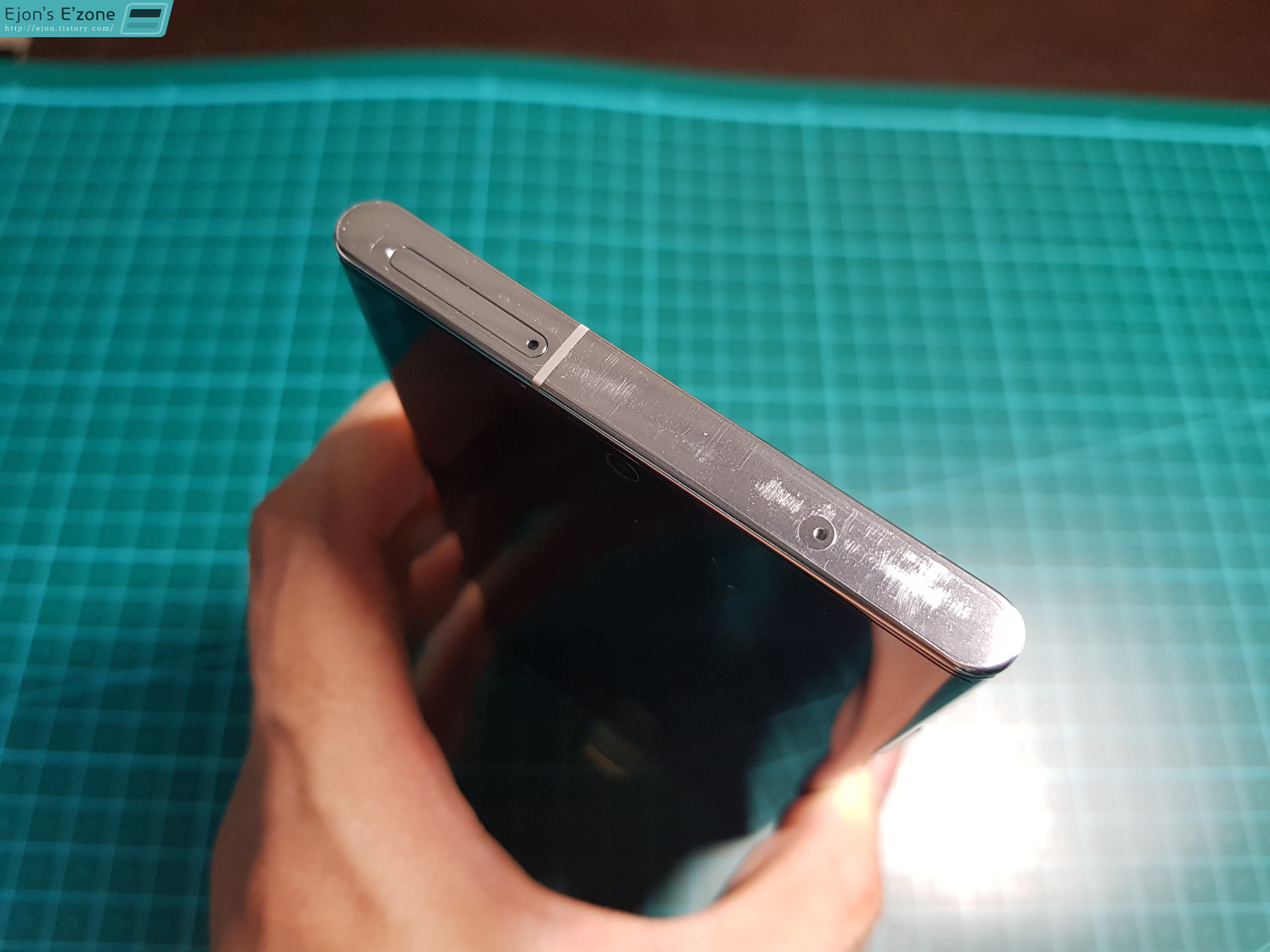 제품 상단에는 마이크와 함께 유심과 마이크로SD 확장슬롯이 위치해 있습니다. 위아래로는 정말 칼같이 깎아내린듯한 모습입니다.