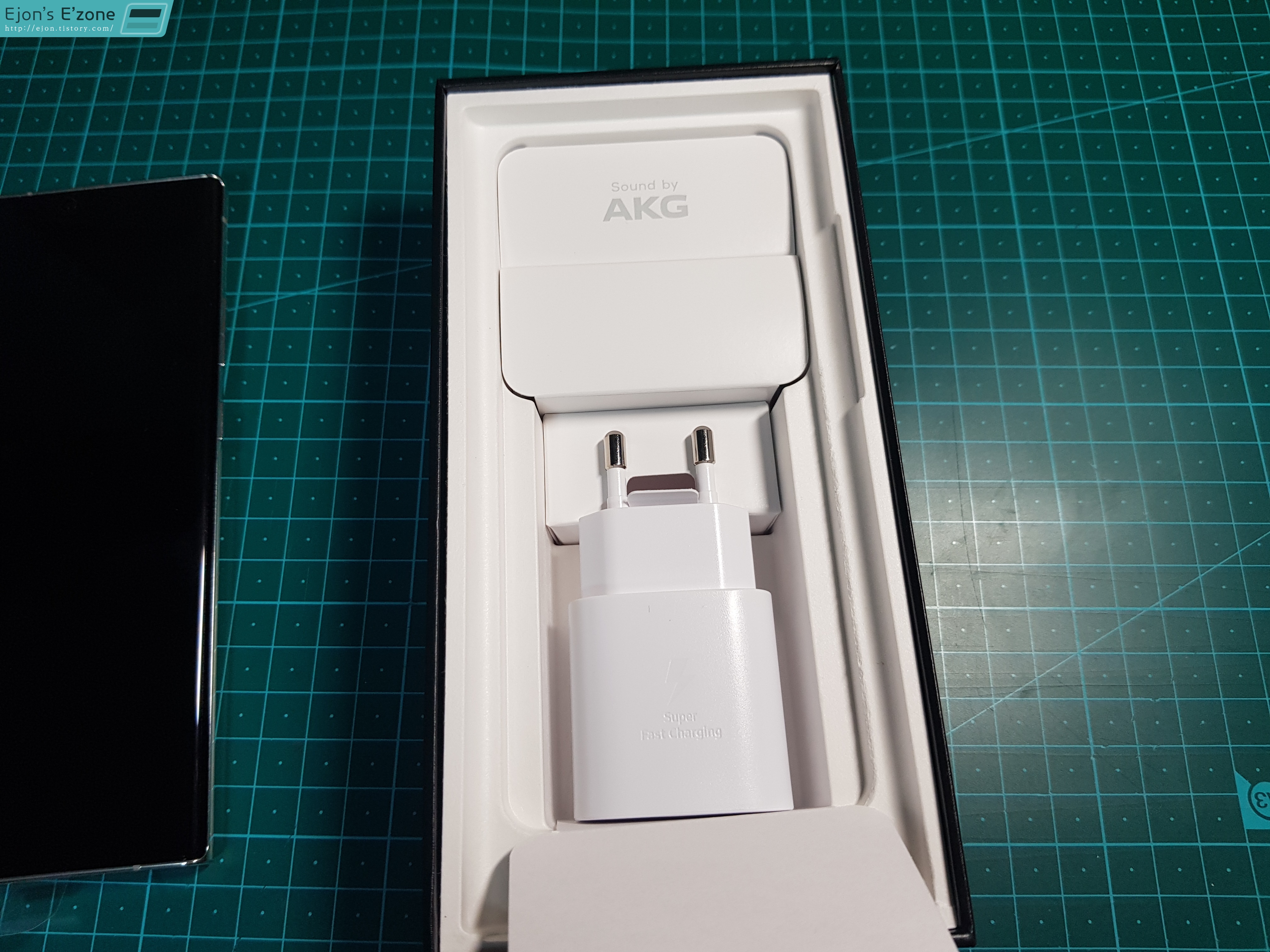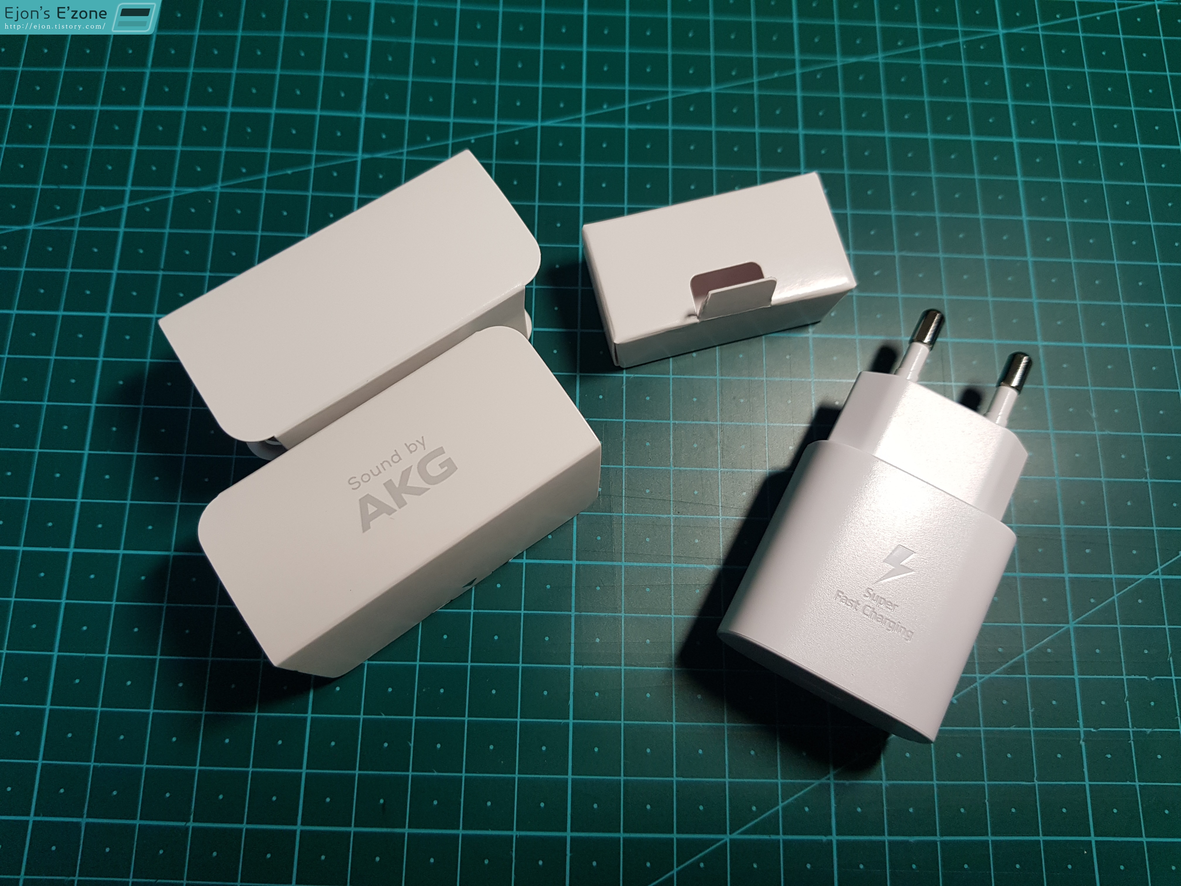 AKG라고 표시된 박스는 당연히 번들 이어폰이 들어가 있습니다. 단자는 TYPE-C단자예요. 이번에 노트 10에서부터 이3.5파이 이어폰 단자를 없애버리는 바람에, 번들이어폰도 3.5파이가 아니라 타입C 단자가 되어버렸지요. 그래서 저는 정말 장난으로만 듣던, '마치 충전기 단자에 이어폰을 꼽는'상황에 처하게 되었습니다. 하... 타입C 이어폰 젠더를 하나 사야겠습니다.
