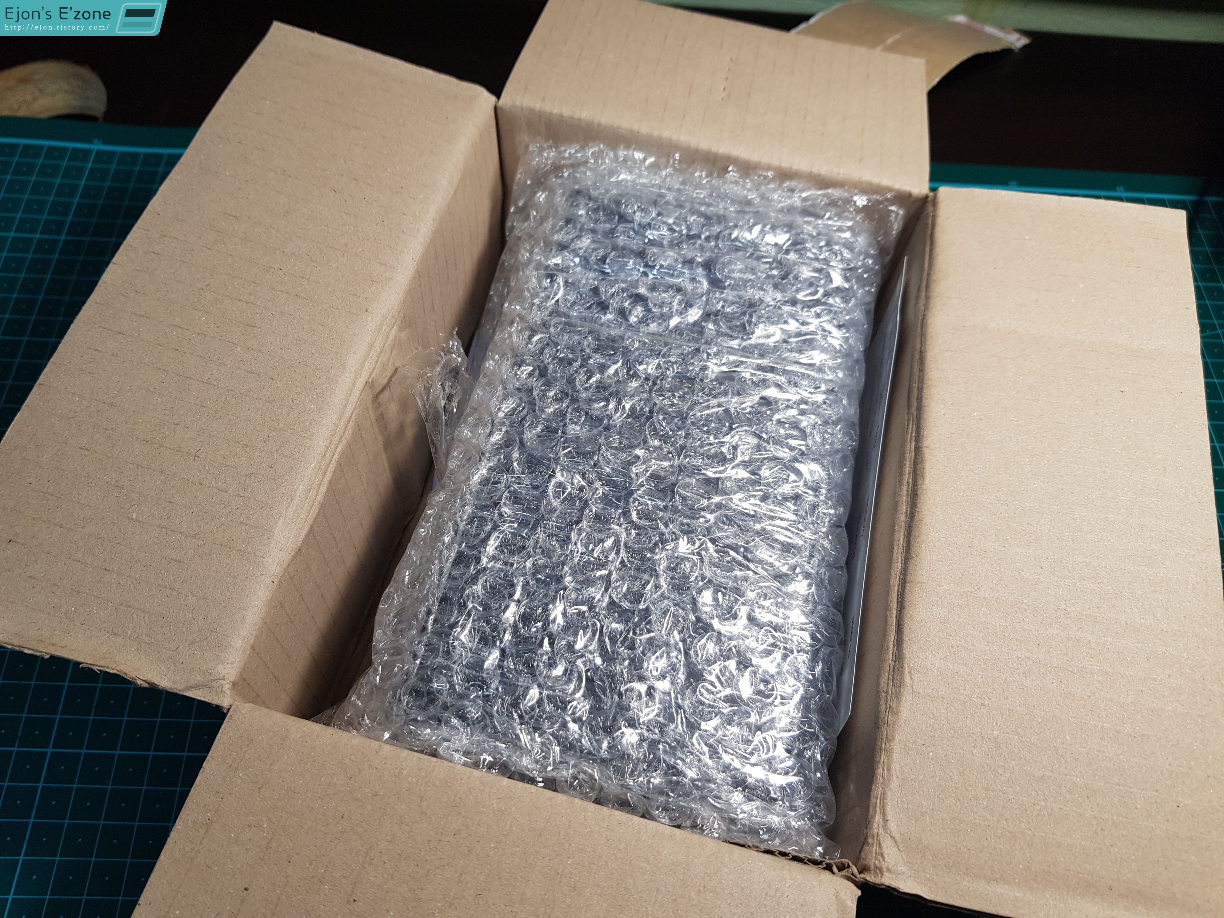 박스를 뜯어보면 뽁뽁이에 둘러싸인 박스 하나가 있죠. 드디어 폰 박스입니다. 우측 하단 부분이 약간 찍힌게 마음이살짝 찢어지네요.
