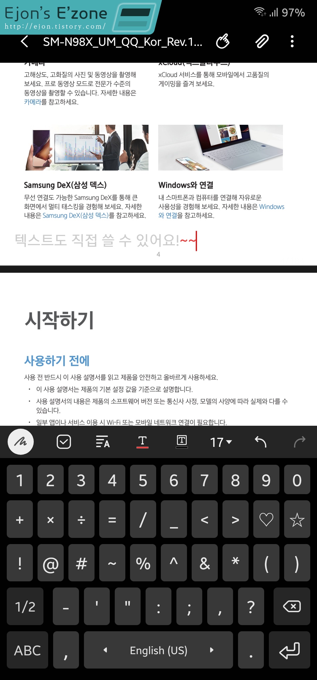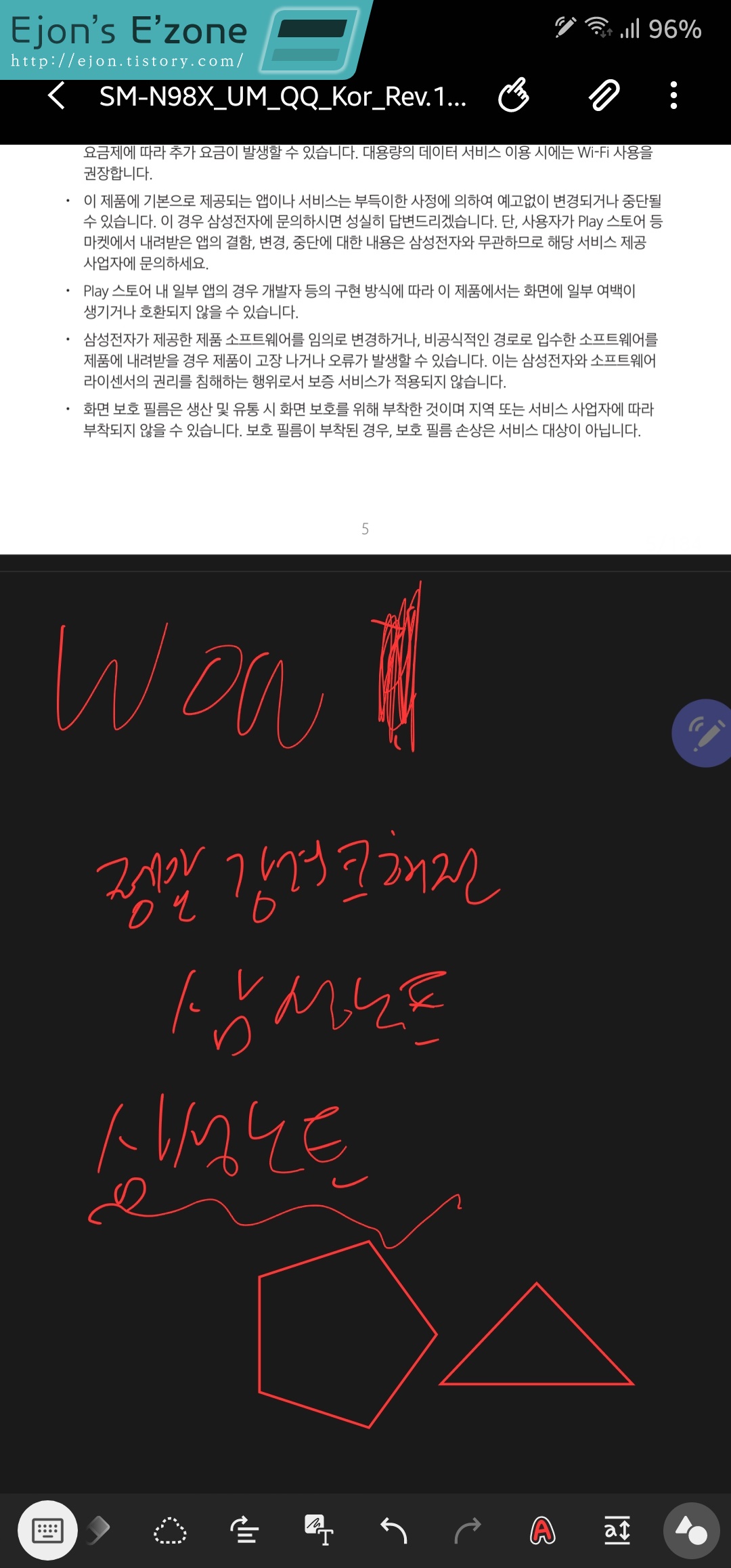 이렇게 지연시간이 짧아지면서 정말 필기감만큼은 엄청 부드럽고 좋아졌습니다!! 완전 대만족입니다. 하지만 S펜으로 마음에 드는 부분은 이뿐만이 아닙니다. 다른 기능은 몰라도 PDF에 쓰기 기능은 정말 강력한 기능입니다. 자세한건 아래에서 설명할게요.