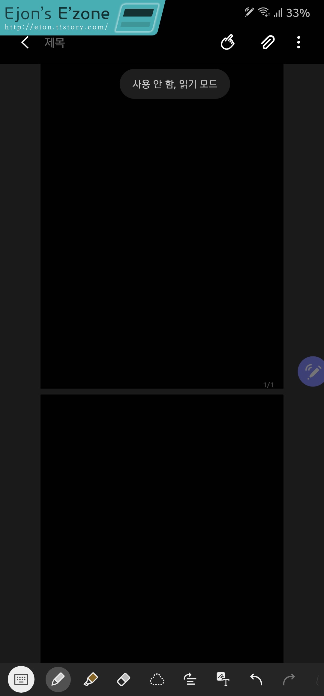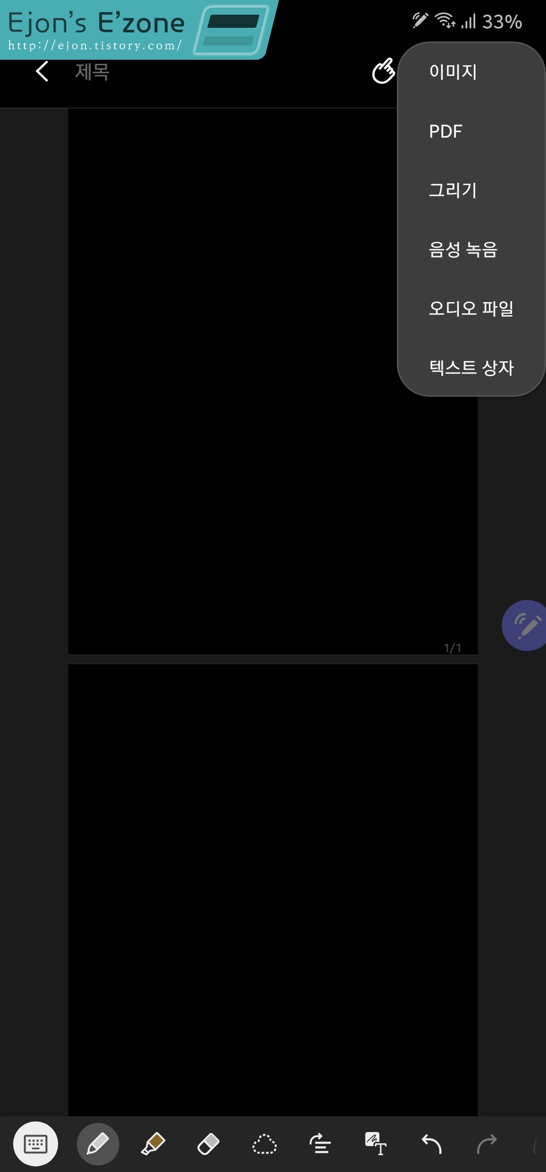 그리고 PDF파일을 불러온 상태에서 또 다른 PDF파일을 불러오면, 뒤에 불러온 PDF파일이 이미 불러왔던 PDF파일 뒤에 이어지게 됩니다. 삼성 노트를 활용하면 PDF와 PDF를 병합하기까지 가능하다는 얘기죠! 놀랍습니다.