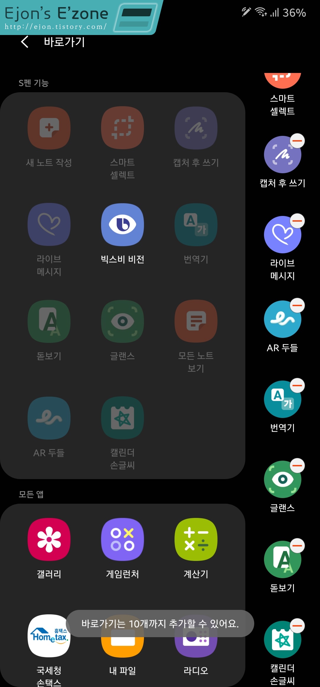 기존 노트에도 있던 기능도 다 들어가 있습니다. 에어커맨드는 선택할 수 있는 앱이 많이 늘어났고, 플로팅 아이콘을 S펜으로 가리키면 제스쳐에 대한 설명도 볼 수 있어서 S펜 기능을 다 못 외우는 사용자도 배려한 모습이 눈에 띕니다. 단, 에어커맨드에는 10개까지만 추가할 수 있어요.