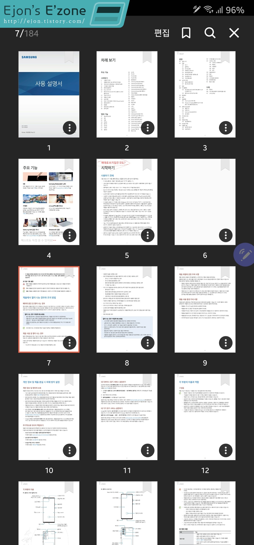 물론 단점은 있습니다. PDF파일의 처리 속도를 높이기 위함인지는 잘 모르겠지만, PDF 파일의 해상도가 약간씩 낮게 보일 때가 가끔 있어요. 특히 화면을 움직일 때 잠깐잠깐, 어도비 아크로벳 앱으로 열면 해상도 높게 바로바로 볼 수 있는데, 삼성노트는 화면을 전환할 때, 잠시동안 저해상도로 보이다가 고해상도로 바뀌는 그런 모습이 많이 보입니다. 이건 앱 업데이트를 통해 개선할 수 있을테니, 차후 개선을 기대해 봅니다.