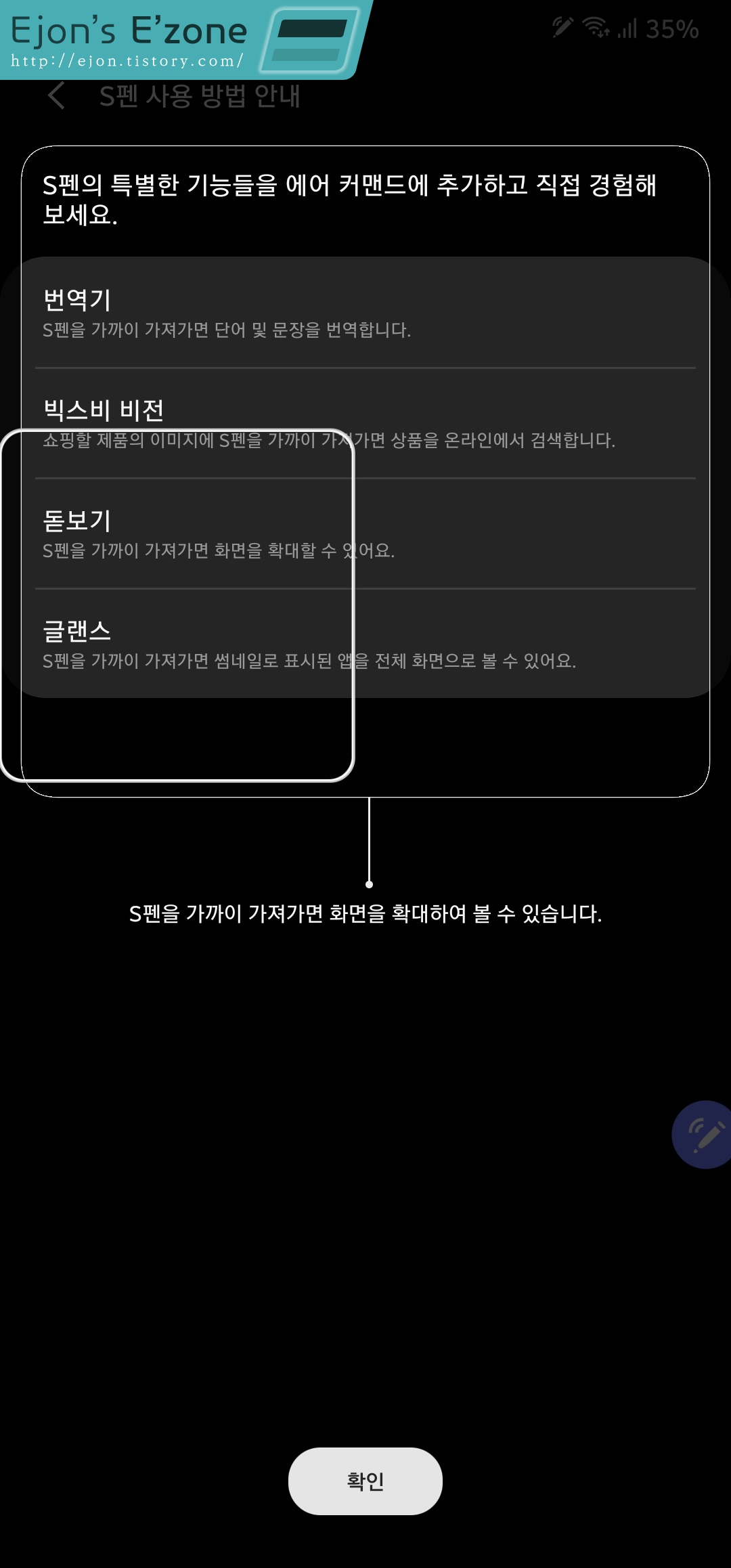 기타 번역, 돋보기, 글랜스 기능도 활용할 수 있지만, 번역을 제외하면 그닥 많이 쓰이지는 않을 겁니다.