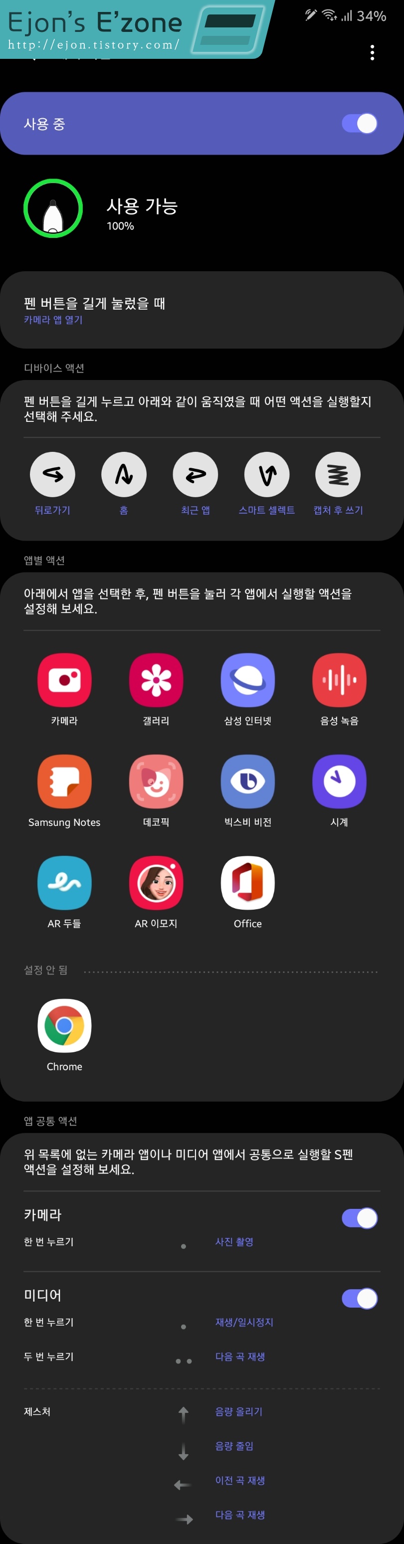 S펜을 여러 개 사용하신다면, S펜 여러 개 사용 가능 옵션을 켜셔야 합니다. 예를들어 라미 펜 처럼 다른 펜을 사용하기 위해서 말이지요.