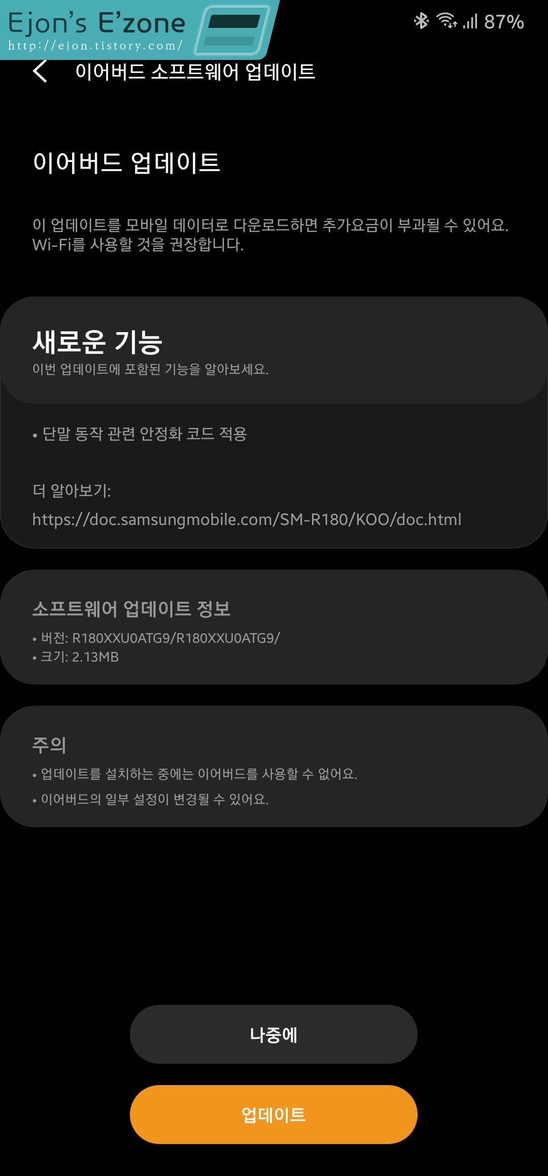 갤럭시 웨어러블 앱을 켜자마자, 버즈 라이브를 업데이트하더라구요.