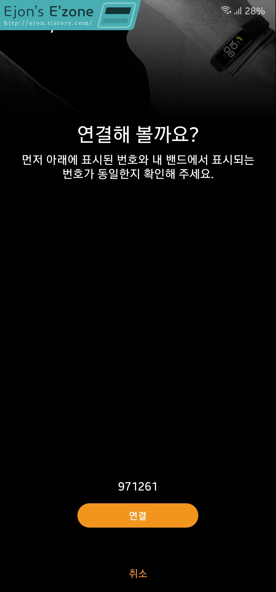 휴대폰과 연결하려면, 갤럭시 웨어러블 앱이 필요합니다. 갤럭시 웨어러블 앱이 깔려 있는 갤럭시 스마트폰에서는 갤럭시핏2를 켜자 마자 바로 인식을 합니다. 연결성은 매우 좋더라구요, 연결에도 시간이 얼마 걸리지 않습니다. 사진을 찍으려고 했는데, 사진 찍는다고 준비하는 동안에 이미 사용할 준비가 완료되었더라구요.