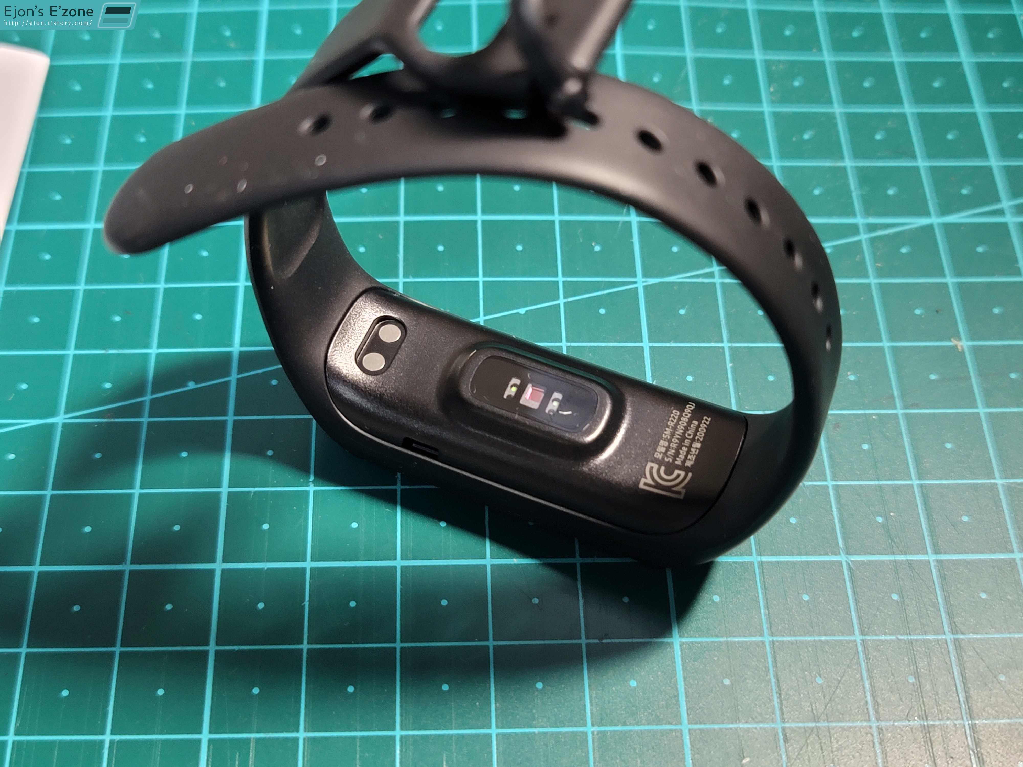 뒷면에는 충전용 단자와 심박수 측정센서가 위치해있습니다. 미밴드와 비슷해 보여요.