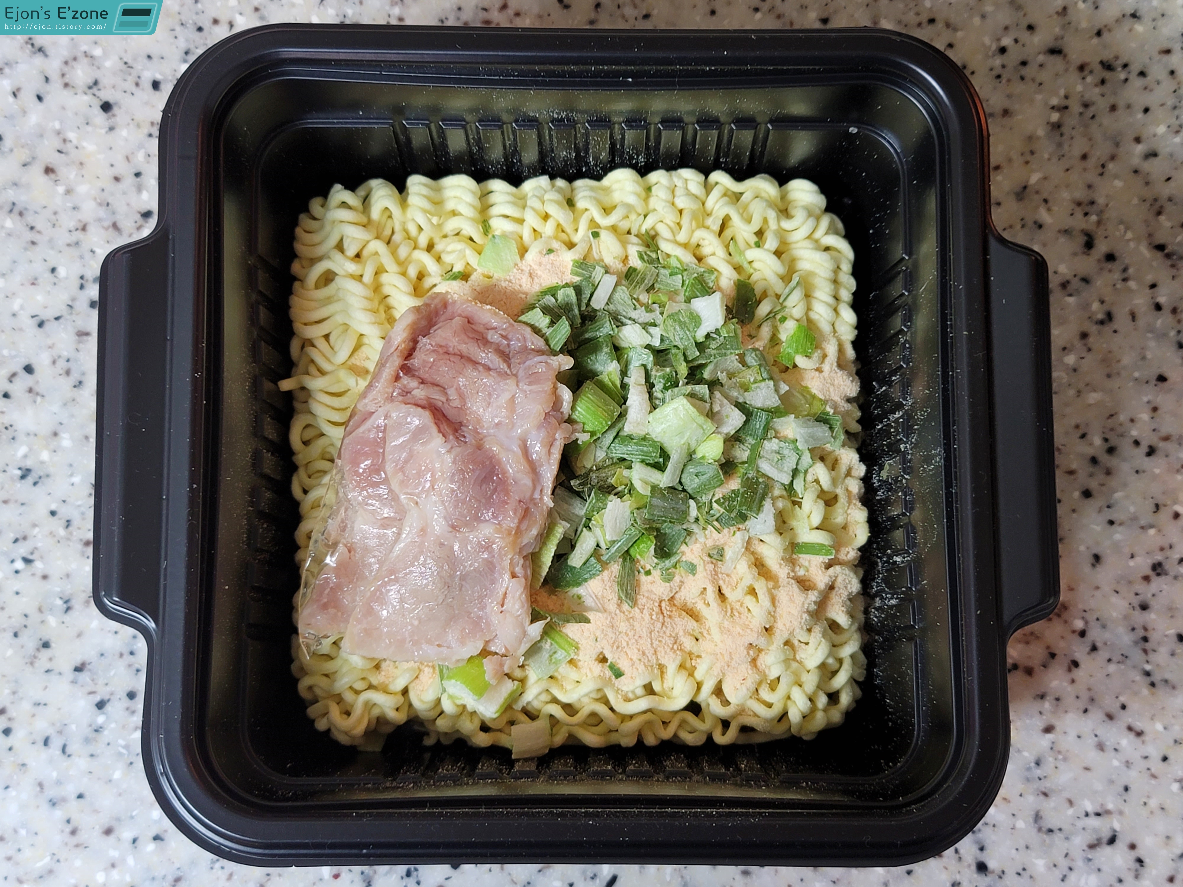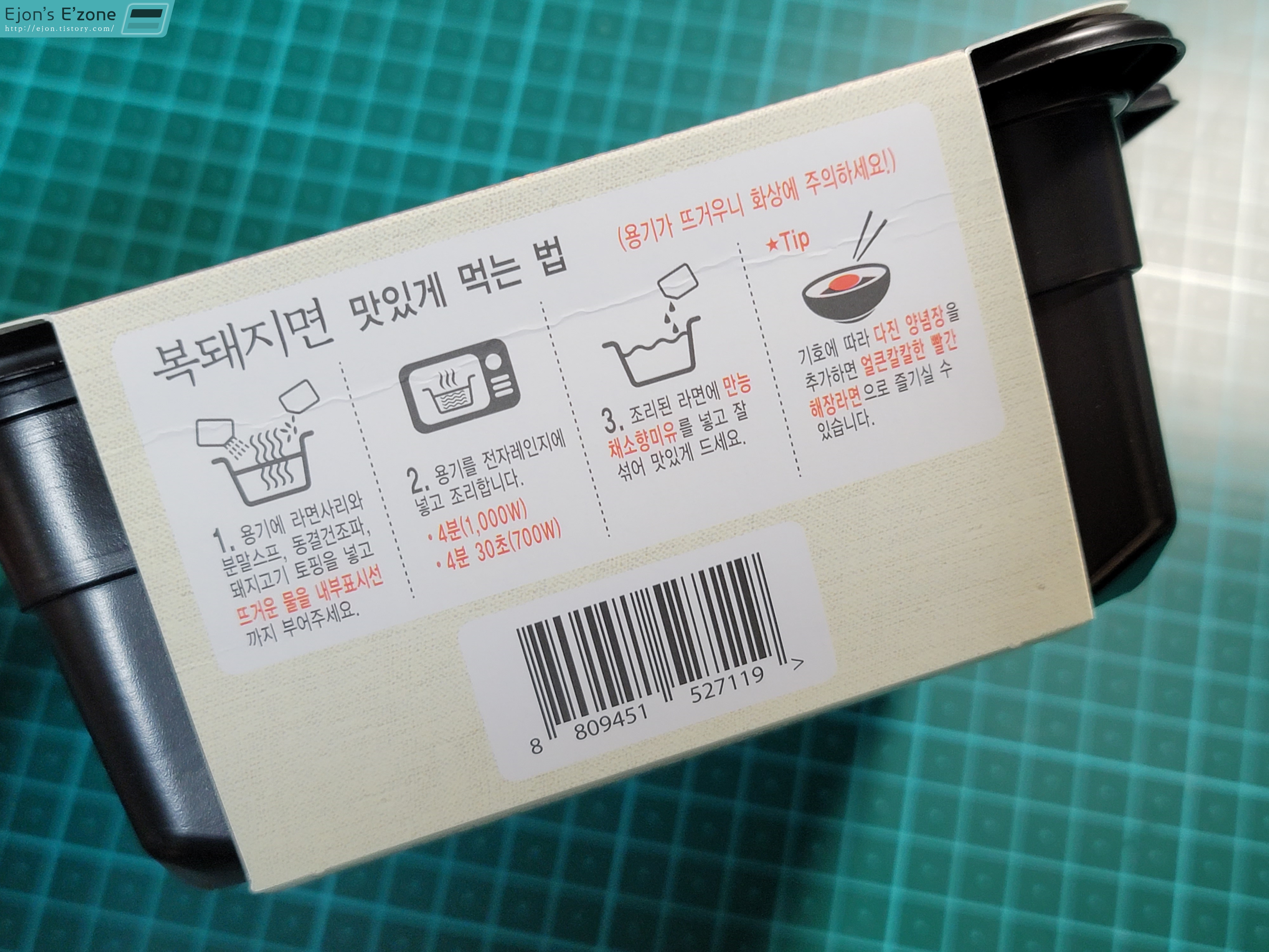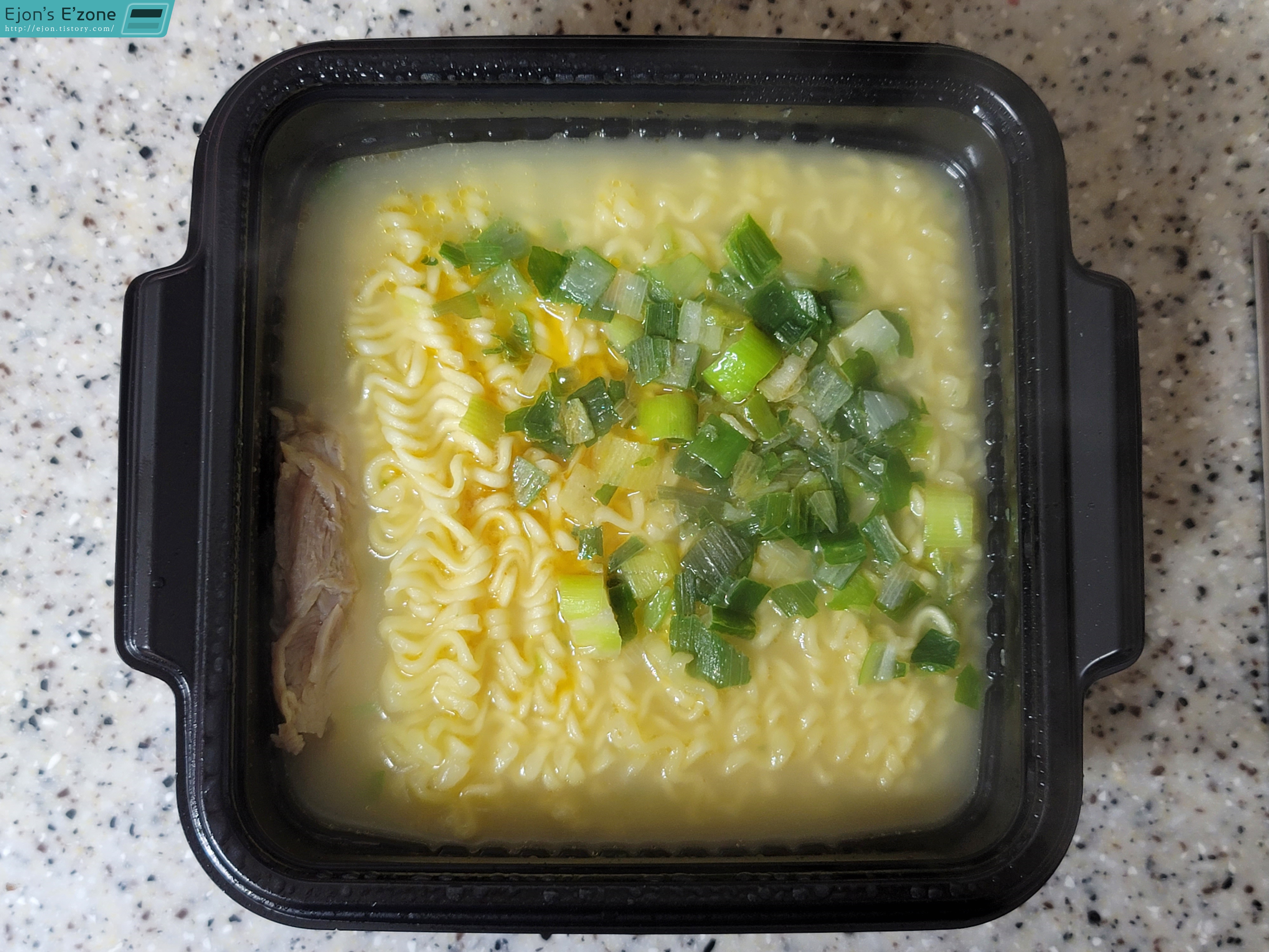 조리법은 이렇습니다. 향미유와 다대기를 빼고 모두 다 때려 넣고, 물을 붓고 전자레인지에 4분 가량 넣어두시면 됩니다.