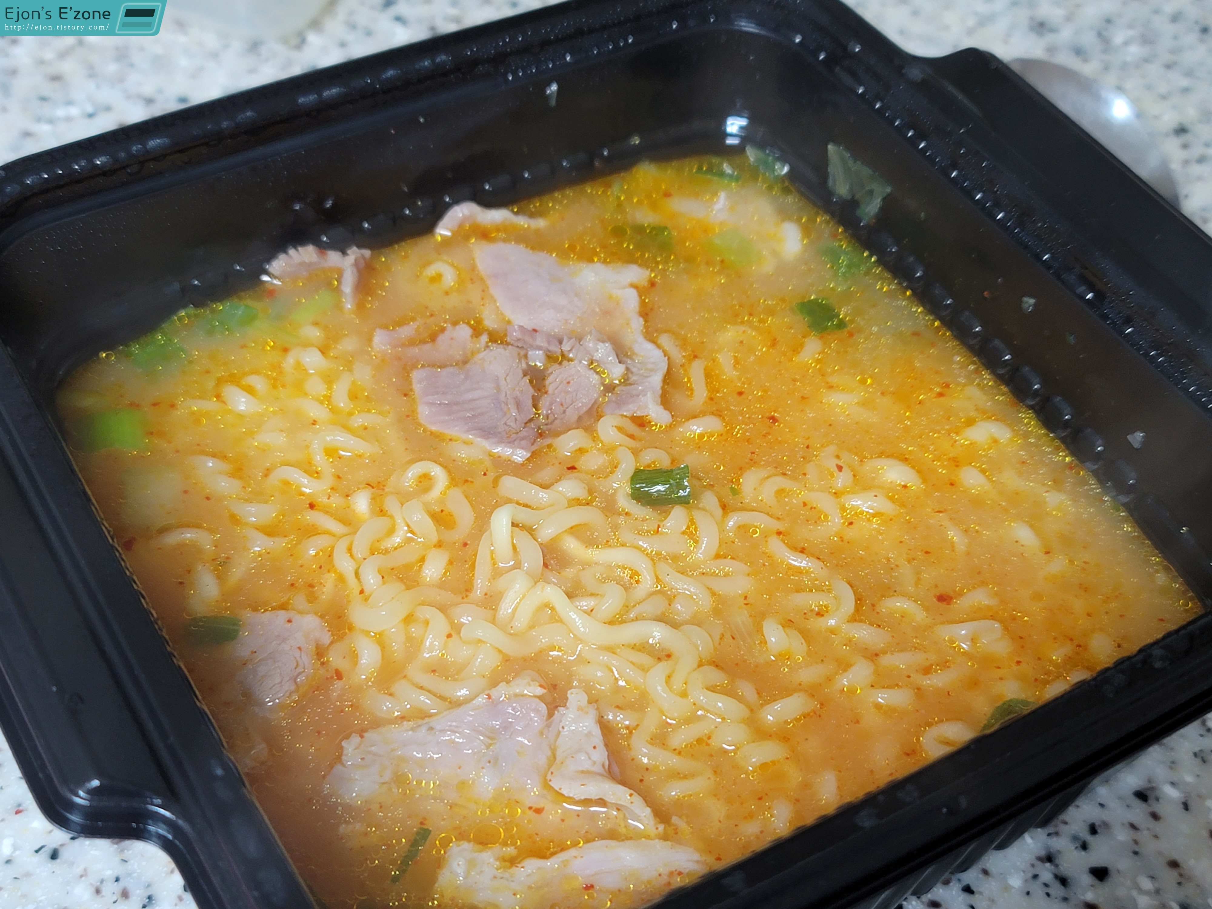 하지만 이걸 '라면'으로 사먹기에는 가격이 꽤 비쌉니다. 개당 3500원이예요. 가격에서 가성비의 메리트가 사라집니다. "3500원이면 차라리 뜨끈한 밥에 반찬 여러가지 있는 도시락을 사먹겠다"는 생각이 불쑥 튀어나옵니다. 라면을 사먹는다기보다는 국밥을 사먹는다고 생각하면 국밥충으로써 국밥 한 그릇에 3500원이라면 꽤 나쁘지 않다고 생각이 들 수도 있습니다만, 이거 이름에서도 알 수 있듯 라면입니다. 고기도 들어가 있으니까 그렇게 비싼 것 같지는 않은데, 고기를 좀 적게 넣고 염가에 내놓는 것도 나쁘지 않을 것 같습니다.