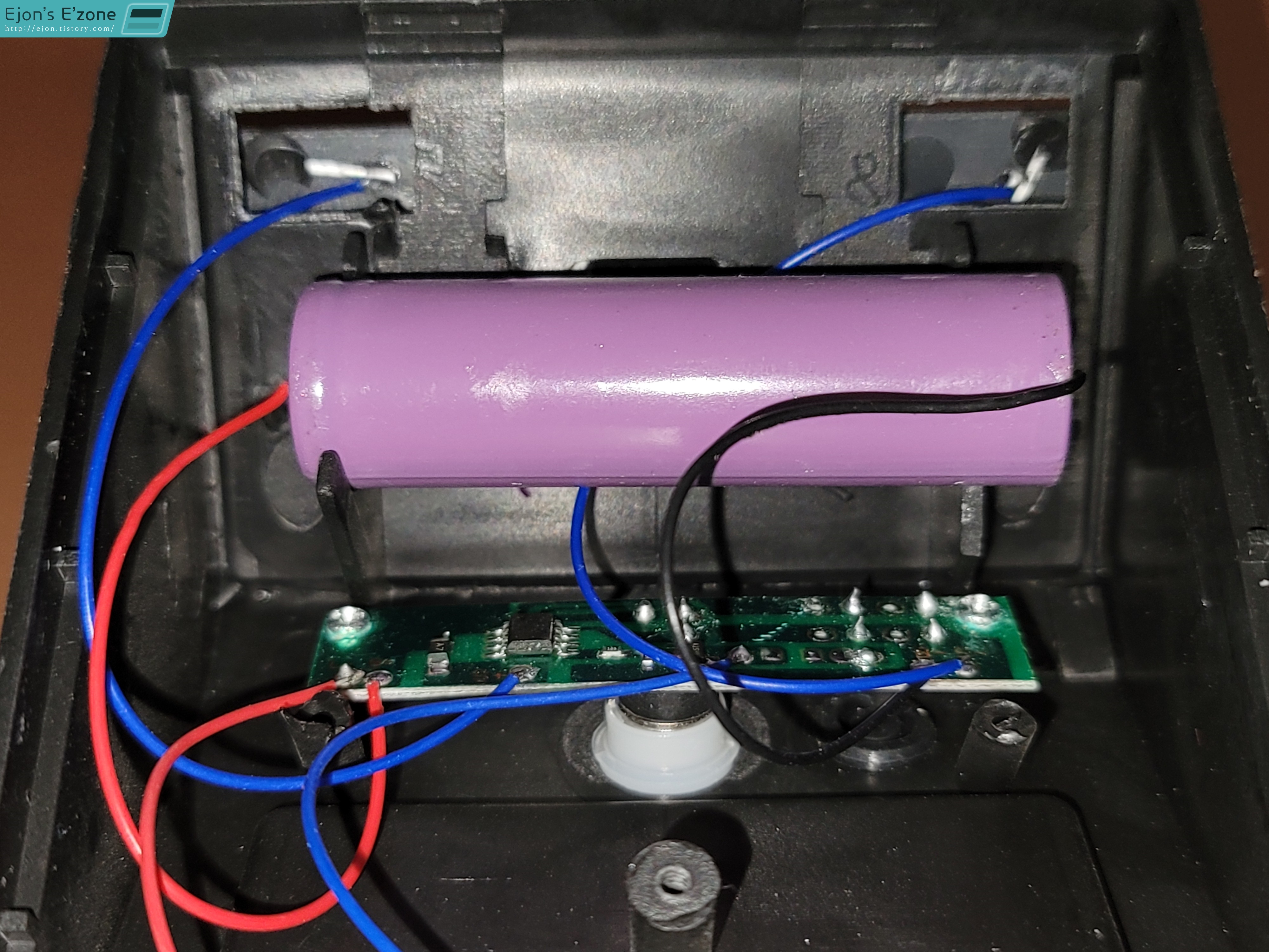 하나는 흔들어보니 뭔가가 고정이 되지 않고 덜렁거리는 느낌이 들기에 직접 분해해보았습니다. 그러니 이 모양이더라구요. 배터리를 고정해주던 플라스틱이 떨어져 나가서 배터리가 그냥 제품 안을 자유롭게 돌아다니고 있던 겁니다.