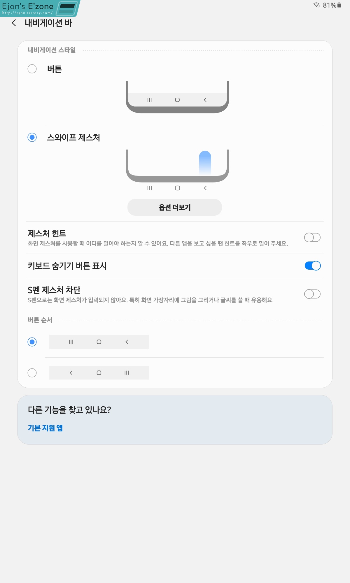하단 소프트웨어 버튼도 설정이 비교적 자유롭습니다. 휴대폰과 비슷한 수준입니다. 버튼 디자인을 바꾸시려면 굿락 앱에 있는 내비스타Navstar 앱을 활용하면, 내비게이션 버튼을 필요할 때마다 숨길 수 있게 할 수도 있구요. 필요한 버튼을 다양하게 넣을 수 있기 때문에 버튼의 사용성을 높여줄 수 있습니다.