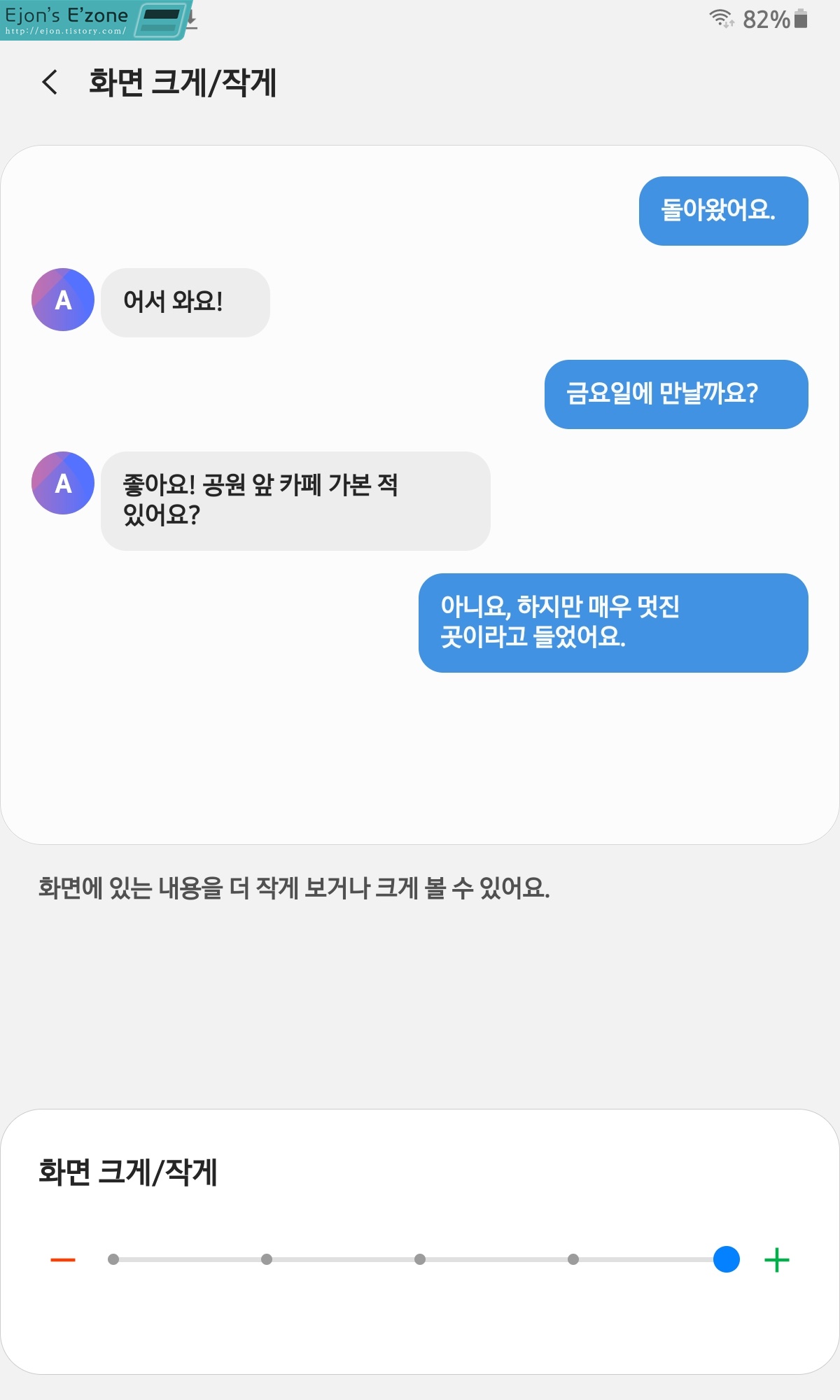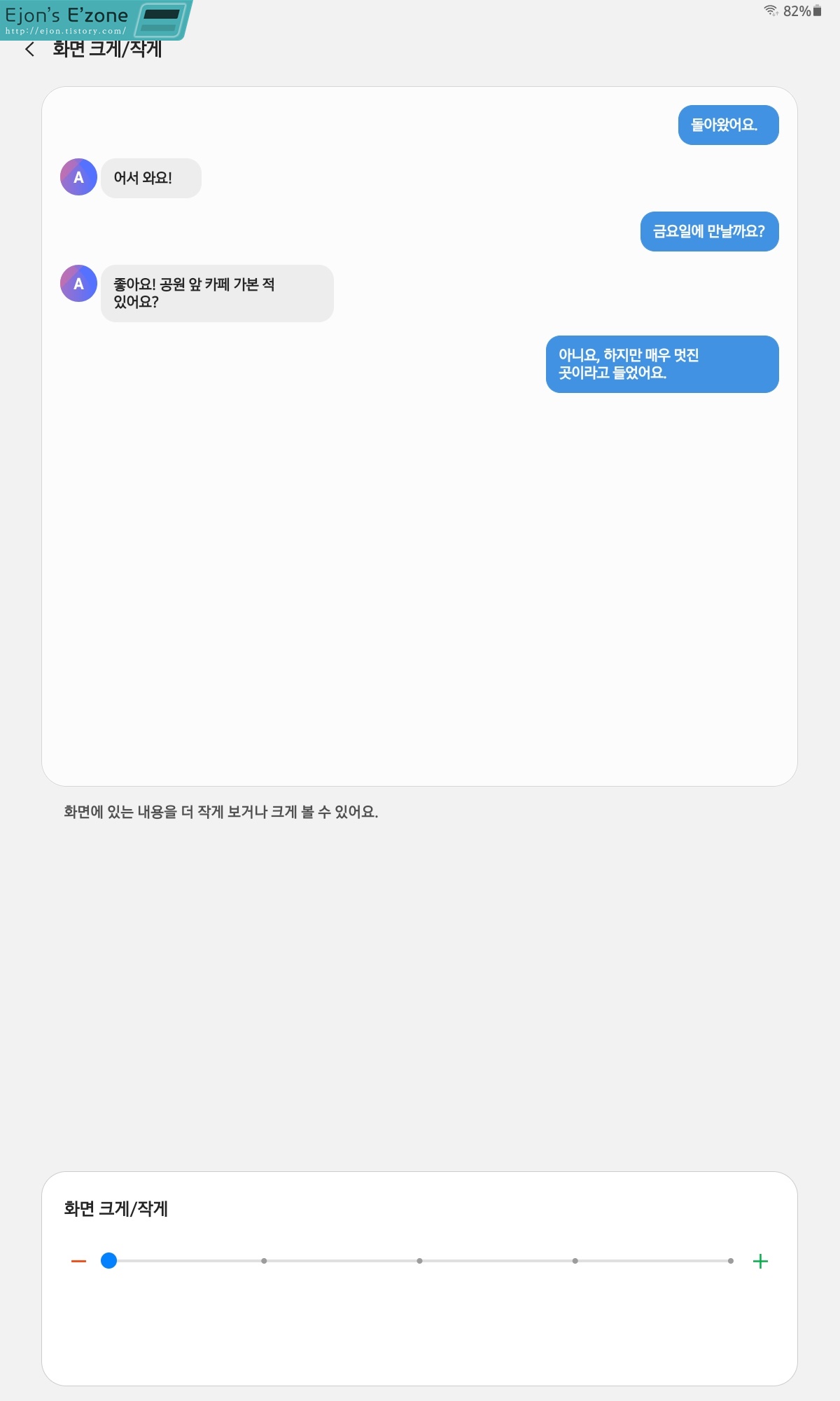 태블릿이기 때문에 글자 크기를 크게 하면 정말 크기 때문에 글자가 잘 안 보이시는 분들이 아니라면 가장 크게 할 필요는 없어 보입니다.