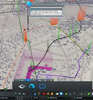 보라색 선이 보이시는가? 저번에 놓으려다 실패한 트램을 다시 시도해봤다. 계획도시니까. 최대한 버스 등 도로교통수단을 최소화하기 위한 방법이다. 버스가 한 대에 30명을 나를 때, 트램은 90명을 나르니, 은근히 수송력은 나쁘지 않다.